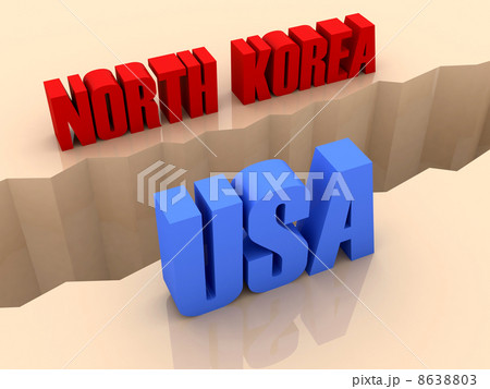 Two countries NORTH KOREA and USA split on sides, separation crack. Concept 3D illustration.