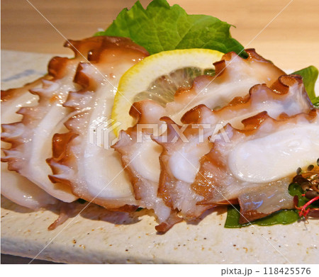 地ダコならではの歯ごたえと旨みを味わう、タコの刺身の写真