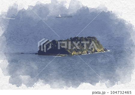 水彩画風 地ノ唐荷島 兵庫県たつの市