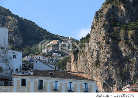 断崖絶壁が続く狭い土地に家並みが続く都市アマルフィ