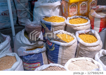地元の市場で販売される新鮮な食材と鳩