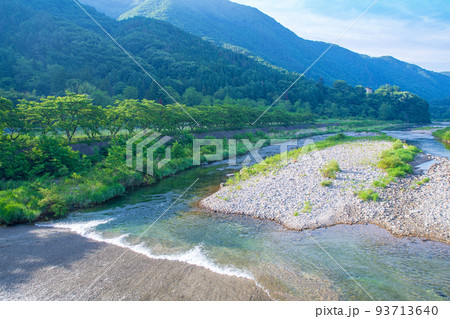 片品川 牧水橋から下流方面の眺め 初夏の風景
