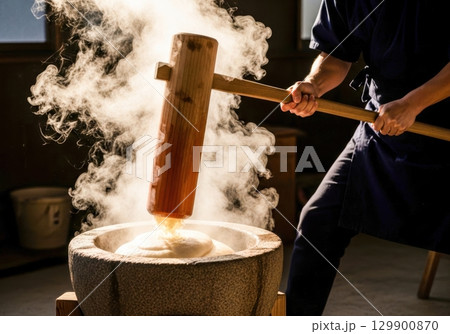 伝統的な日本の餅つき風景