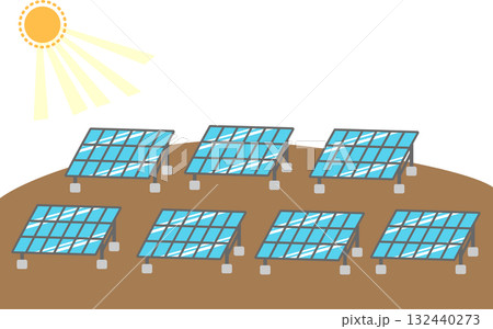 メガソーラー施設|太陽光パネルが並ぶ風景イラスト素材