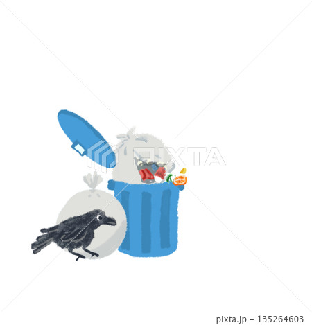 ゴミ箱を荒らすカラスの注意イラスト