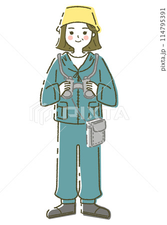自然保護官 イラスト素材 パークレンジャー 山歩きをする人 登山 バードウォッチング