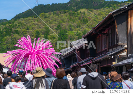 美濃まつり、うだつの上がる町並みを練り歩く花みこし〈岐阜県美濃市〉