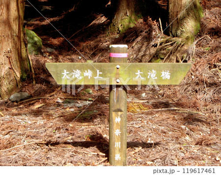 大滝沢沿いの登山道に立てられた東海自然歩道の案内標識