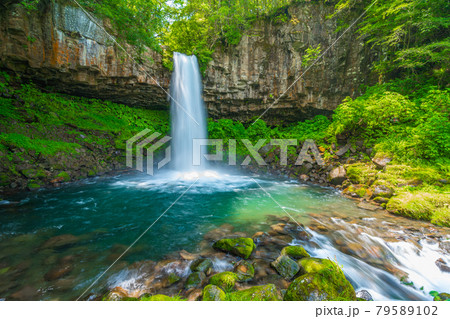 萬城の滝 ばんじょうのたき 柱状節理 新緑 地蔵堂川