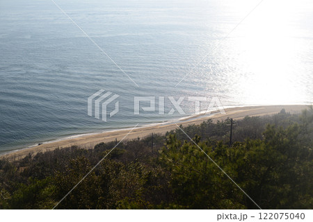 島根半島突端に立つ美保関灯台の遊歩道から見た北側の日本海