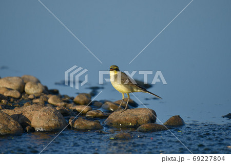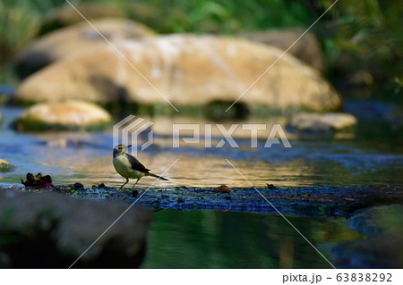有一隻可愛的小鳥在河邊戲水。