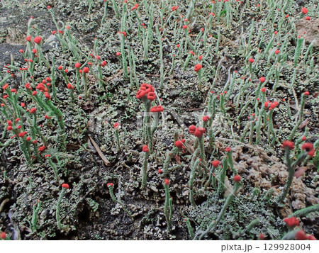 地衣類 ハナゴケ科コアカミゴケの赤い子器