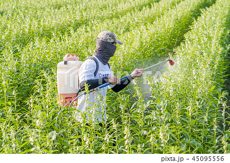 年輕 農夫 灑農藥 病蟲害 芝麻田 spraying pesticides 農薬を散布し