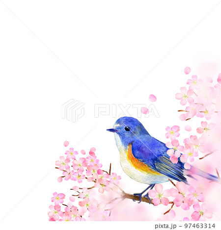 満開の桜とルリビタキ 春イメージ