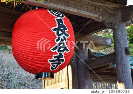 鎌倉 長谷寺の山門と大きな赤い提灯