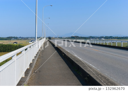 快晴の青空と車が走る坂東大橋【埼玉県本庄市】