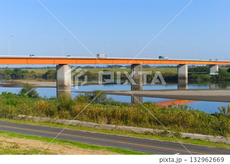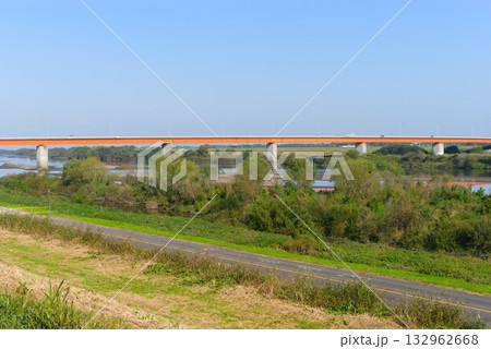 茨城県坂東市の利根川に架かる芽吹大橋の風景