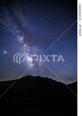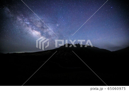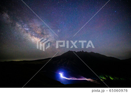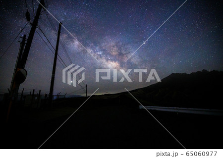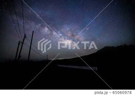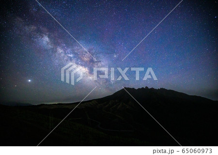 《熊本県 坂梨展望所》坂梨展望所から見る根子岳と夏の天の川