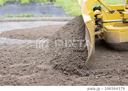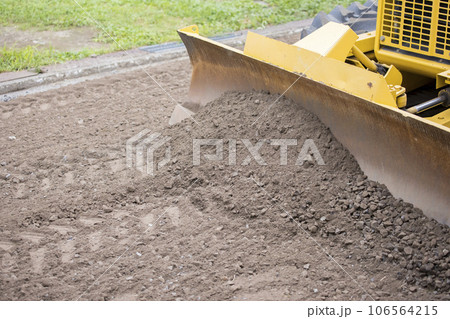 舗装工事イメージ 路盤を平らに均すブルドーザー