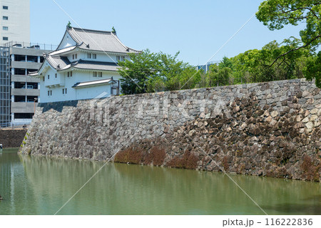 兵庫 明石 明石城の石垣と巽櫓・坤櫓(東方向から、晩春)