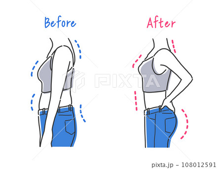 垂れて広がったピーマン尻とスリムなお尻のイラスト 比較・ビフォーアフター