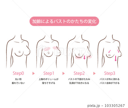 ハリのあるバストと垂れたバストのイラスト ビフォアアフター