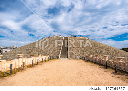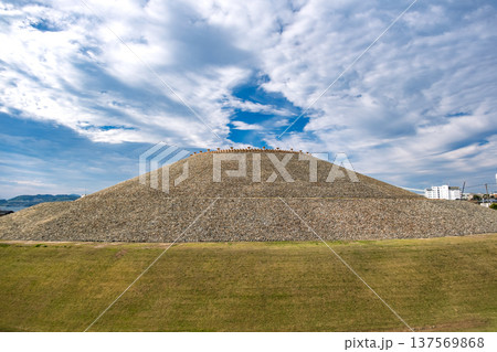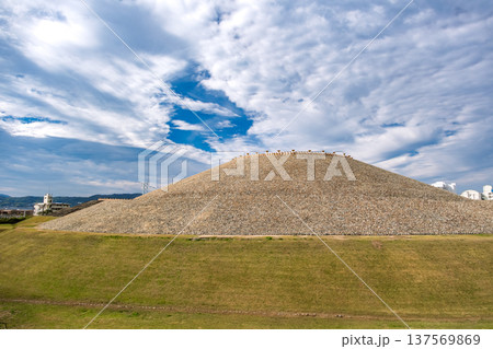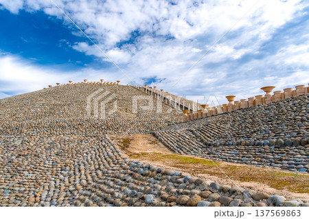 兵庫県神戸市 巨大な前方後円墳「五色塚古墳」と並ぶ埴輪