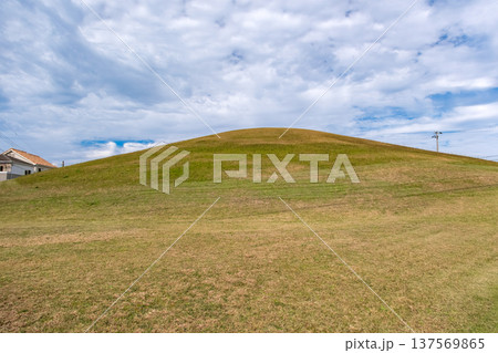 兵庫県神戸市 芝生に覆われた史跡「小壺古墳」の墳丘