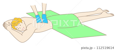 うつ伏せに寝て気持ちよさそうに垢すりエステを受けている可愛い女性 シンプル イラスト ベクター