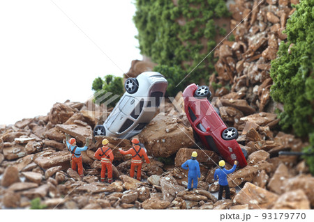 土砂災害によって埋まったり破壊された自動車