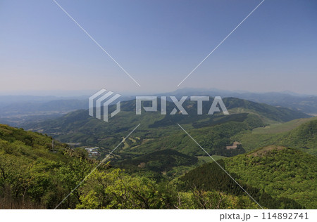 鶴見岳から見る城島高原と城ヶ岳・雨乞岳など