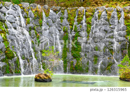浜松市にある秋の浜松城公園の新緑に映える滝の風景(静岡県)