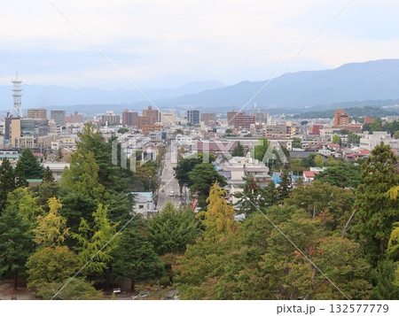 水彩画風 上田市街地 上田城からの眺め 長野県上田市
