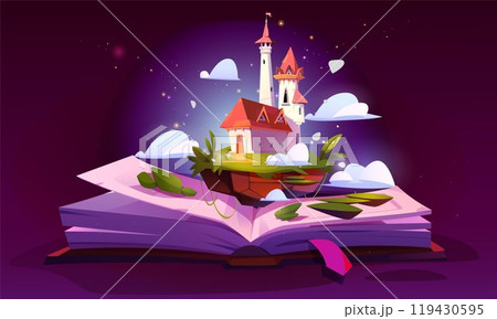 Fairytale castle on open book pages