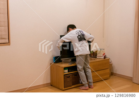 水槽の中を覗く幼児
