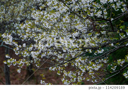 自然 植物 オオシマザクラ、真っ白で大きな花が特徴。ソメイヨシノより少し早めの開花です
