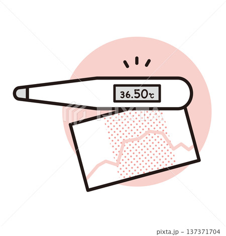 シンプル イラスト 基礎体温計と基礎体温グラフ 妊活の体温管理イメージ ベクターイラスト