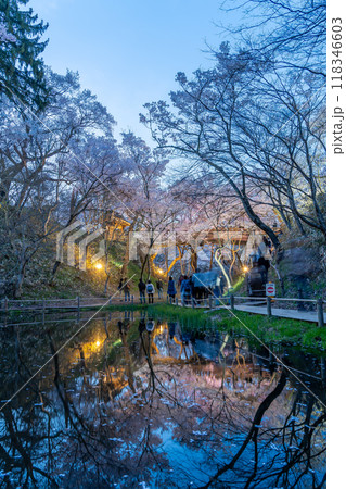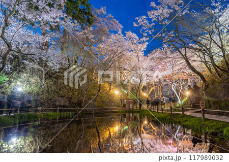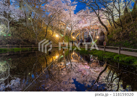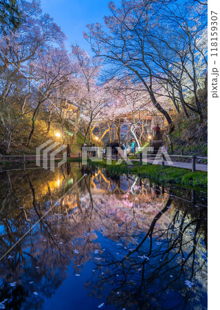 長野県伊那市 天下第一の桜と言われる池越しの高遠城址公園満開の夜桜とカメラマン