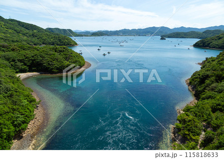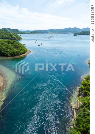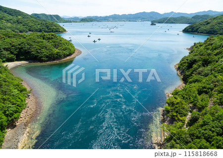徳島県鳴門市 堀越橋から堀越海峡の激流と淡路島・大鳴門橋を望む
