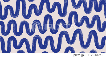 Brush, marker, ink drawn bold doodle lines seamless pattern. Abstract modern geometric blue wavy ornament vector background.