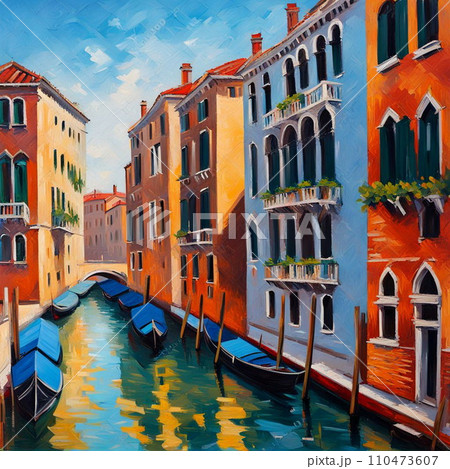 AI-generated content. Oil painting of Venetian architecture and water canal in Venice