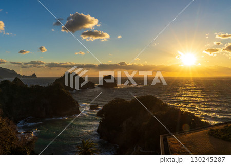 静岡県賀茂郡西伊豆町 堂ヶ島の景色 夕日の町堂ヶ島