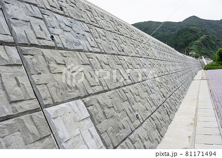 道路沿いに建設された新しいコンクリートの擁壁