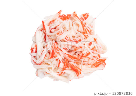 Fresh Crab meat, crabmeat isolated on the white background. top view