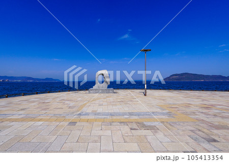 高松港一文字防波堤を望む港の風景(香川県高松市)