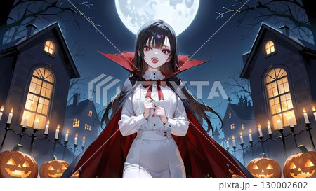 ハロウィンにドラキュラの衣装を着た女性のイラスト