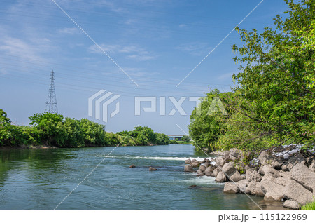 枚方市を流れる清流天野川 淀川合流地点 大阪府枚方市