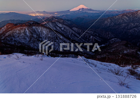 丹沢・塔ノ岳山頂から見る黎明の富士山