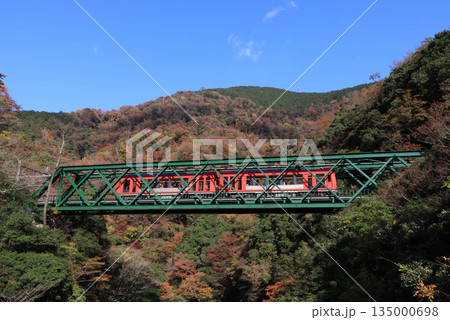 小田急箱根 秋の早川橋梁を渡る電車