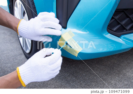 車のフロントバンパーのキズの補修作業(補修方法) タッチペンで補修